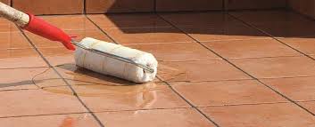 عزل مائي فوق السيراميك قبيل تنظيف السطح من طرف العامل باستعمال الأدوات المهنية المرتبطة بالسطح بداية تفريغ كافة فواصل البلاط التي هي مارة من واسطة المياه ثم يحصل التنظيف.